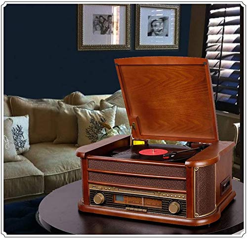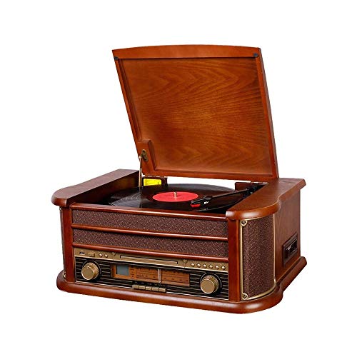 LKNJLL 3-velocità Giradischi con Radio, Lettore CD/Cassette Player, Aux-in e Bluetooth