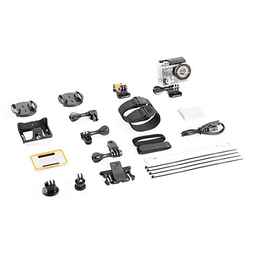 Telecamera, custodia impermeabile 30m, frontalino colorato, pacco batteria Li-Ion 1050 mAh, cavo USB e 20 elementi di montaggio