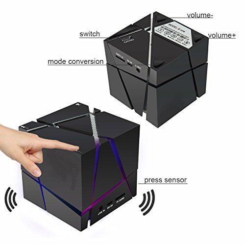 ♦ ♦ ♦ Bluetooth Stereo Magic Cube Lettore musicale: tecnologia Bluetooth 4.0, lunga distanza di trasmissione fino a 10 meter. incorporato batteria al litio; microfono incorporato, Chiamate vivavoce telefono cellulare consente; Radio FM integrata.