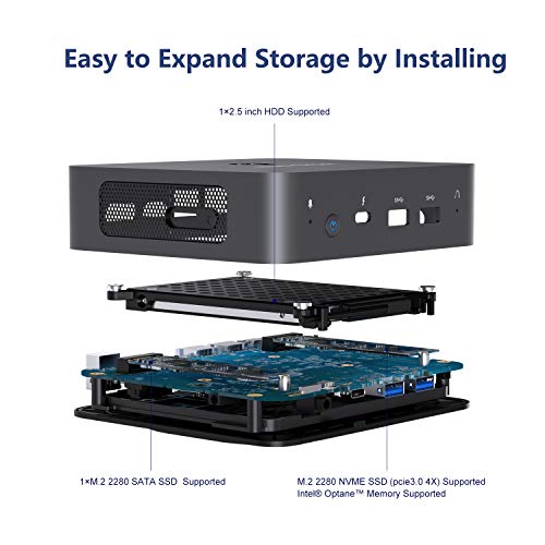 【Capacità molto ampia】 PC desktop X35G dotato di SSD PCIe M.2 2280 da 256 GB e RAM DDR4 da 3200 MHz e 16 GB. Inoltre, la memoria può essere espansa tramite HDD SATA da 2,5 pollici, scheda TF (fino a 128 GB) o SSD SATA M.2 2280 (SATA 3.0 6.0 Gb / s). Trasferimento file o riproduzione video, è veloce da risolvere!
