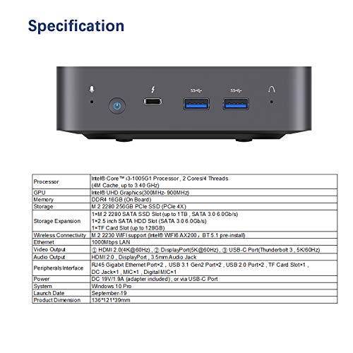 【Intel Core i3-1005G1】 Il sistema Windows 10 Pro Mini-PC preinstallato e dotato di un processore Intel Core i3-1005G1 (fino a 3,4 GHz). Grafica Intel UHD (300 MHz- 900 MHz). Una nuova generazione di processori ad alte prestazioni offre un funzionamento più veloce e un’esperienza più fluida.
