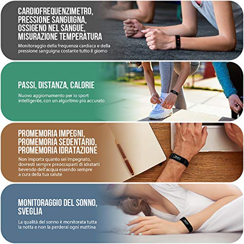 Activity Tracker: Un orologio fitness con tantissime funzioni utili alla tua quotidianità: monitoraggio del sonno, monitoraggio della frequenza cardiaca 24 ore su 24, temperatura, pressione sanguigna, rilevamento dell’ossigeno nel sangue, conteggio dei passi, consumo calorico, distanza, 16 modalità di esercizio, track record GPS, sveglia e promemoria.