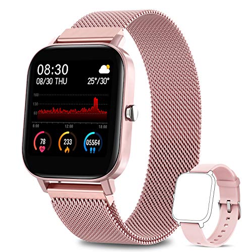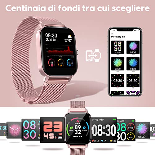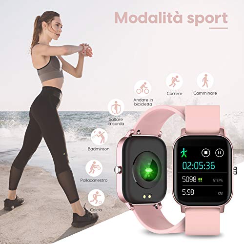【Multifunzione】Il più adatto per la tua vita intelligente, lo smartwatch multifunzionale contiene funzioni più pratiche: tracker di attività (passi, calorie, distanza), 7 modalità di esercizio, monitoraggio della frequenza cardiaca, monitoraggio del sonno, pressione sanguigna + monitoraggio dell’ossigeno nel sangue , Promemoria per telefono e messaggi, controllo di musica e fotocamera, promemoria sedentario, sveglia, cronometro, modalità multilingue incluse italiano, ecc