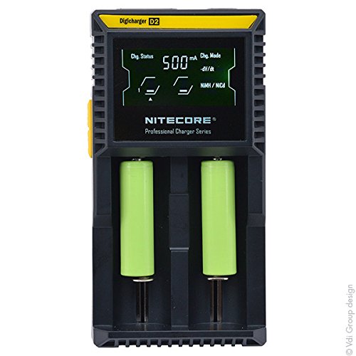 Nitecore digicharger d2 two bay universal chargerdescription:the nitecore d2 is a universal smart charger compatible with almost all cylindrical rechargeable batteries, thus eliminating the need to own several chargers. The d2 automatically detects li-ion, ni-mh and ni-cd batteries, and through manual selection is also capable of charging lifepo4 batteries. Intelligent charging circuitry selects the optimal charging mode (cc, cv and dv/dt) for a given battery and each of the d2’s two microcomputer-controlled charging slots then monitors and charges the battery independently. Furthermore, an integrated digital lcd screen clearly displays charging progress, voltage, current and time while an intelligent automatic power-off function terminates current when charging is complete. The nitecore d2: the world’s most advanced fully-automatic digital charger. It’s as simple as insert, detect and charge.features: capable of charging 2 batteries simultaneouslyeach of the two battery slots monitors and charges independentlycompatible with and identifies li-ion (26650, 22650, 18650, 17670, 18490, 17500, 18350, 16340(rcr123), 14500, 10440), ni-mh and ni-cd (aa, aaa, aaaa, c) rechargeable batteriesoptimized charging design for imr batteriesintegrated lcd panel clearly displays charging parameters and progresstwo conveniently located side buttons allow easy selection of specific battery types and charging parametersintelligent circuitry detects the battery type and status before entering automatic charge mode (cc, cv, dv/dt)automatically detects battery power status and selects the appropriate voltage and charge mode (with the exception of lifepo4 batteries which require manual selection)compatible with lifepo4 batteriescompatible with small capacity batteriesautomatically stops charging when completefeatures over-charge prevention to protect batteri.