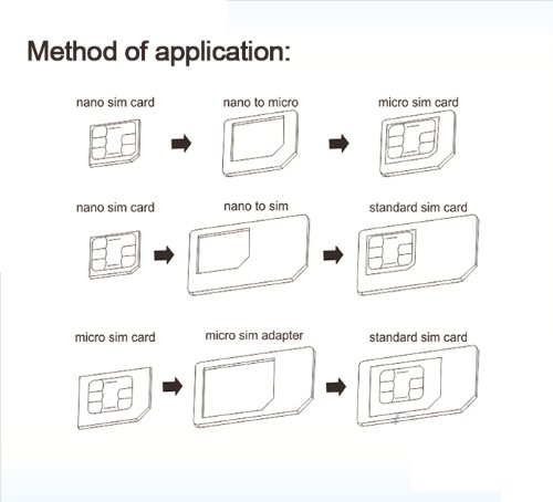 Questo dispositivo può tornare la scheda Nano SIM Card & Micro SIM a standard SIM Card size. Allo stesso tempo, è facile da usare. Questo articolo è compatibile con tutti i dispositivi mobili. Pratica e risparmiare un sacco di problemi per acquistare Carte extra.