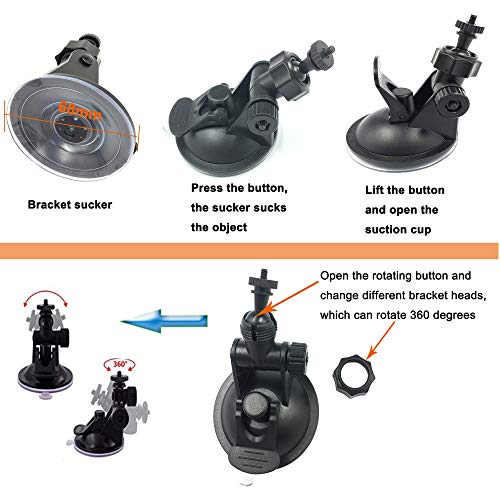 Convenient to install.Easy to use.Small size, convenient to carry.Padded side holds your device firmly.A good partner for a travel recorder. 6 diversi punti di articolazione del perno. 1 taglia largasupporto per attacco per dash cam, Grande ventosa parabrezza a ventosa funziona bene in climi caldi. cruscotto ventosa Diametro 70mm.
