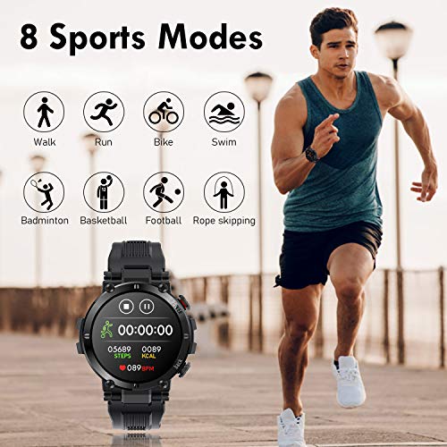 【Modalità multisport】 Lo smartwatch tiene traccia dell’allenamento quotidiano e registra i dati di allenamento. Ha molte modalità sportive, come camminare, correre, andare in bicicletta, saltare la corda, giocare a badminton, ecc. Può registrare calorie, tempo, passi, chilometraggio, velocità, frequenza cardiaca dell’esercizio. Puoi vedere tutti questi dati collegando l’applicazione del telefono cellulare tramite Bluetooth, analizzare e migliorare il tuo programma di allenamento.
