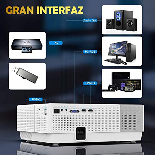 🎬 【Risoluzione 4K massima e FULLHD nativo】: Il proiettore home theater Luximagen FUHD230 include HDMI 2.0 per trasmettere con una risoluzione 4K massima, e la sua risoluzione FULLHD nativa 1920×1080 pixel ci darà la massima chiarezza anche su grandi schermi di proiezione