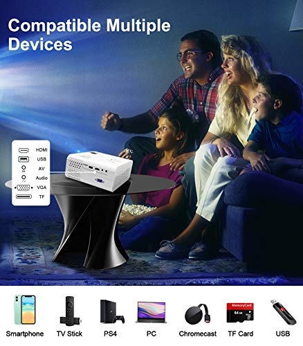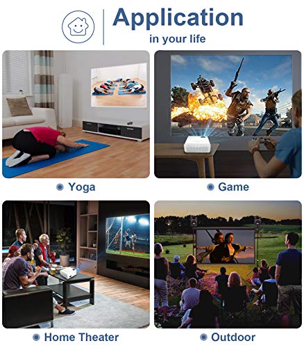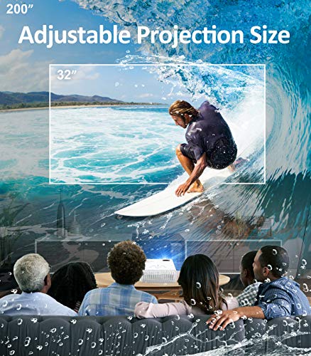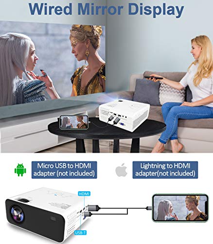 【Proiettore per Smartphone】 Lasciate riposare gli occhi e godetevi lo schermo da 200″. Con una dimensione di proiezione fino a 200″, questo home cinema con videoproiettore vi offre una grande festa visiva. Collegate il vostro iPhone al proiettore mobile con un cavo HDMI& USB a Lightning. Collegare lo smartphone Android al proiettore tramite un adattatore HDMI tipo C/micro usb. (cavo HDMI/adattatore non incluso)