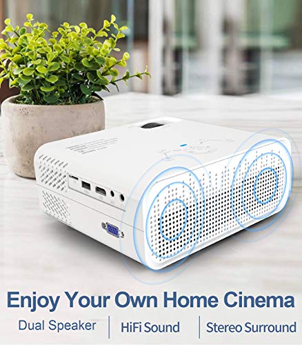 【Lampada a basso consumo energetico e lunga durata】Questo proiettore full hd aggiornato ha il miglior sistema di raffreddamento, alta efficienza di raffreddamento e bassa rumorosità della ventola e prolunga la vita della lampada a 60000 ore, il che significa che è possibile utilizzarlo per più di 15 anni. La sorgente luminosa a LED di alta qualità è a riflessione diffusa per evitare che la luce brillante colpisca direttamente gli occhi e causi affaticamento agli occhi.