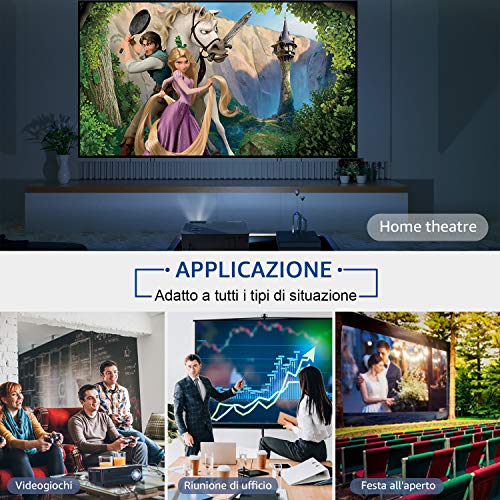 ❤【Condivisione wireless dello schermo】 L’ultima funzione di connessione WiFi è compatibile con il sistema IOS e Android. Non è necessario convertire il cavo in modo complicato, basta solo una volta connettere tramite WiFi e puoi connettere il tuo dispositivo al proiettore led wireless ogni volta che vuoi usarlo.