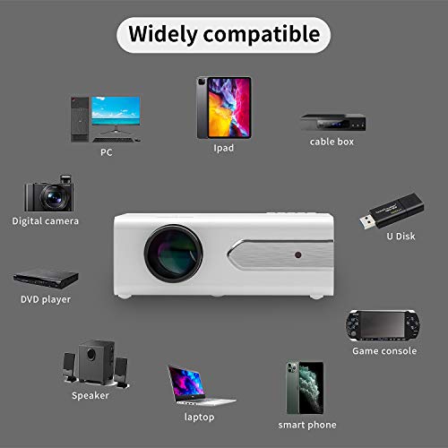 【Connessione multimediale】: l’interfaccia include HDMI/ USB/ VGA/ AV/ scheda Micro SD/ uscita audio 3.5 mm. Questo proiettore Home Cinema può funzionare bene con Roku Streaming Stick / Laptop/ lettore DVD Blue-Ray/ PS3/ PS4/ Xbox/ TV box tramite ingresso HDMI. Connetti al PC tramite jack VGA. Agganciare a cuffie / altoparlanti esterni tramite la porta audio. Inserire il dispositivo U-disk/ disco rigido nello slot USB. Compatibile con smartphone, tablet.