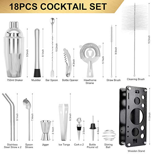 RATEL Set Cocktail, Set Shaker Cocktail in Acciaio Inossidabile da 18 Pezzi, Kit Barista Professionale, Shaker da 750 ml…