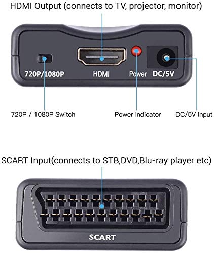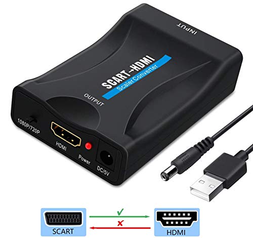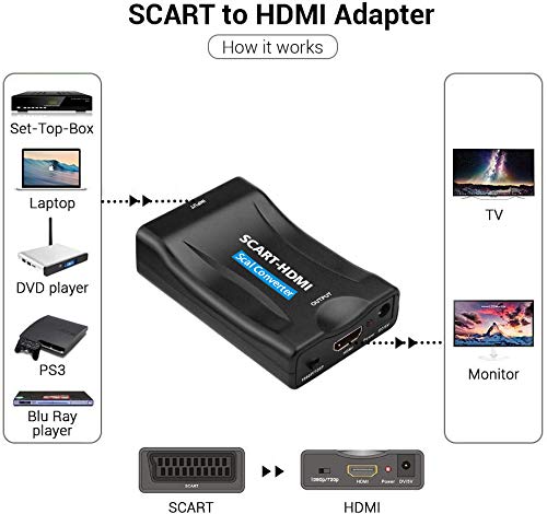 Scart to HDMI Converter Adapter, Scaler Video Audio Converter Support HDMI 720P/1080P Cable for DVD Player to TV (SET-01…