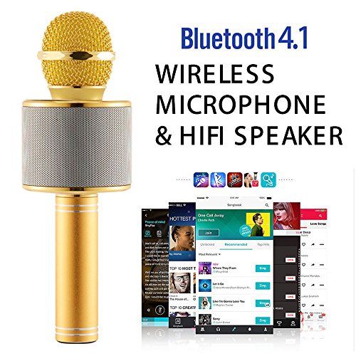 Shalleen WS-858 – Microfono portatile wireless per karaoke, con lettore USB, con microfono Bluetooth