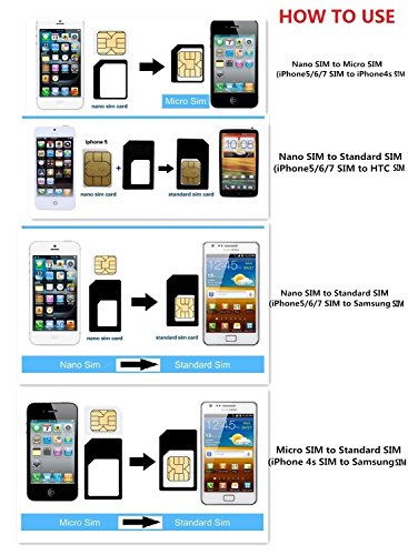 🐺 Gli utenti di iPhone bisogno di questi adattatori di schede SIM per convertire Nano SIM a micro/standard SIM o Micro SIM a standard SIM e abbinare ad altri cellulare basato su iPhone unico tipo di SIM.Voce nel frattempo è molto utile per altri telefoni cellulari di marca per convertire Micro SIM per scheda SIM standard. Come Samsung Sony LG googl Huawei mi Nokia e così via