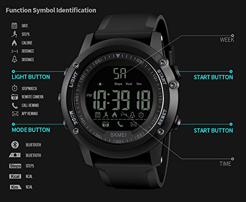 SKMEI Men’s Sport Casual Water Resistente Smart Watch Orologio Intelligente Sportivo Casuale da Uomo 5ATM Impermeabile…