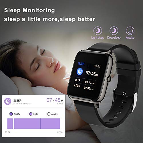 ⌚ Compatibilità e batteria durevole: lo smartwatch è compatibile con iOS 9.0 / Android OS 4.4 o versioni successive. Dotato di una durata della batteria di 180 mAh, ricarica rapida (ricarica completa in 2 ore), basso consumo energetico e lungo tempo di standby, l’uso normale è di 10-15 giorni, 30 giorni.