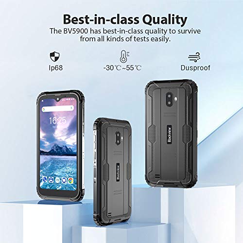 ⚡【Android 9.0 e 3GB di RAM + 32GB di ROM e NFC】⚡Monta il più recente processore Quad-Core 2.0GHz MT6761 con Android 9.0, insieme a 3 GB di RAM e 32 GB di memoria interna (possibilità di espanderla fino a 256GB), lo cellulare rugged Blackview BV5900 offre una straordinaria esperienza d’uso, prestazioni altamente efficienti. La funzionalità NFC porta a uno stile di vita più intelligente in termini di trasferimento dati e pagamento rapido.