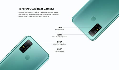 ★【Fotocamera posteriore quadrupla 16MP AI: 】fornito con quattro fotocamere posteriori, un obiettivo principale chiaro a 16 MP, un obiettivo grandangolare a 8MP, un obiettivo macro a 2MP, un obiettivo ritratto, N30 dà sempre immagini brillanti con ottimi e chiari dettagli (Fotocamera macro 2MP, fotocamera principale ultra chiara 16MP, obiettivo ultra grandangolare 8MP, fotocamera ritratto 2MP).
