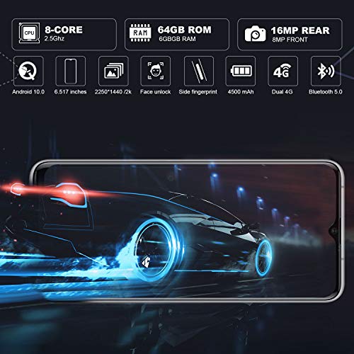 Smartphone Offerta Del Giorno, 6GB RAM 64GB ROM, 6.52″Full Screen, Android 10 Octa Core Cellulare, Batteria 4500mAh, 16MP + 8MP, 4G Dual SIM Face & Fingerprint Unlock Telefoni Mobile (Verde)