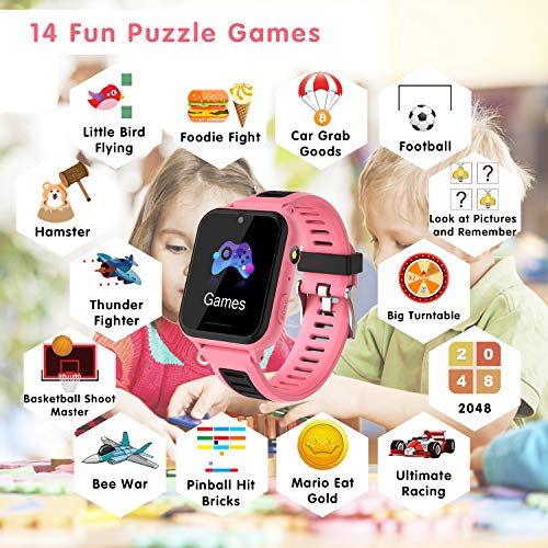 🎁 【Musica e 14 giochi】 Questo orologio intelligente ha 14 giochi di puzzle che possono esercitare il pensiero e le capacità di reazione dei bambini. I bambini possono giocare a questi giochi quando sono annoiati o hanno bisogno di intrattenimento. Scarica la musica dal computer nella cartella “My Music” dell’orologio intelligente (è supportato solo il formato MP3), ei bambini possono riprodurre la loro musica preferita in qualsiasi momento, divertendosi così di più.
