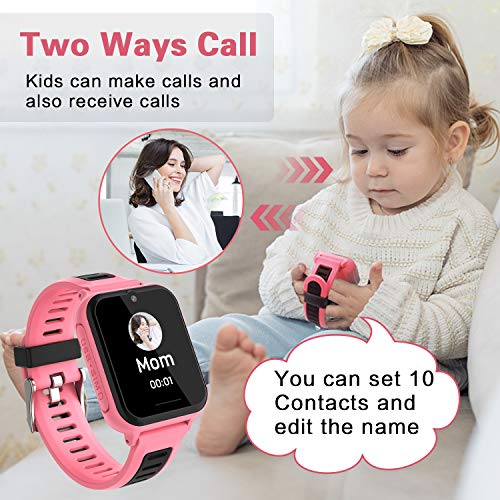 🎁 【Chiamata Bidirezionale e SOS】 Con la scheda 2G segnale Nano, i bambini possono ricevere chiamate ed effettuare chiamate. Puoi aggiungere 10 numeri di telefono e modificare i nomi. Dopo aver impostato i primi 2 contatti, vengono automaticamente convertiti in contatti SOS. Premere due volte il pulsante di accensione per abilitare le chiamate SOS. L’orologio chiama due contatti di seguito finché qualcuno non risponde al telefono. Inoltre, verrà inviato un SMS a 2 contatti per ricordarglielo.
