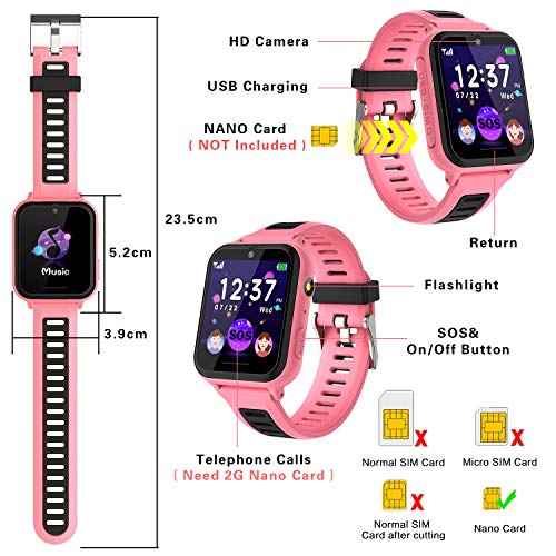 🎁 【Facile da Usare】 Non è necessario scaricare alcuna app o connettersi al telefono dei genitori. L’orologio intelligente per bambini è molto facile da usare. Con la scheda nano SIM con segnale 2G, l’orologio può utilizzare le funzioni di chiamata bidirezionale e SOS. Le seguenti funzioni possono ancora essere eseguite senza una scheda nano SIM, p. Es. B. Ascolta musica, scatta foto, gioca, sveglia, calcolatrice, ecc. Questo orologio intelligente è un buon regalo per ragazzi e ragazze.