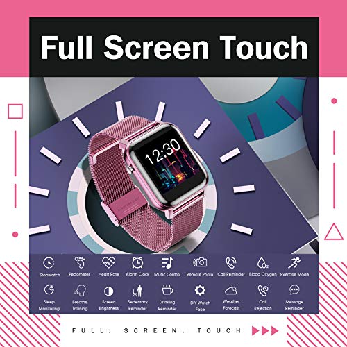 [Orologio Intelligente Multifunzione]Smartwatch impermeabile IP68 può essere indossato quando si lavano le mani o quando piove. Smartwatch ha una vasta gamma di funzioni: chiamate e promemoria messaggio, cardiofrequenzimetro, monitoraggio del sonno, allenamento respiratorio, ossigeno nel sangue, sonno, fotografia a distanza, controllo della musica, meteo, sveglia, cronometro, trova il telefono/smartwatch, regolazione della luminosità dello schermo , supporta 18 lingue,eccetera.
