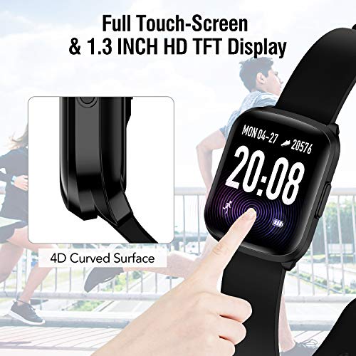【Schermo a sfioramento completo e impermeabile IP68 smartwatch】Smartwatch da 1,3 pollici più colore con eccellente qualità delle immagini, aspetto semplice e design ultraleggero. Un touchscreen completo offre un’esperienza utente migliore. Il cinturino attivo è impermeabile IP68 e soddisfa gli standard internazionali di resistenza all’acqua. Ciò significa che è possibile utilizzarlo in piscine e docce fredde (non toccare l’acqua calda).
