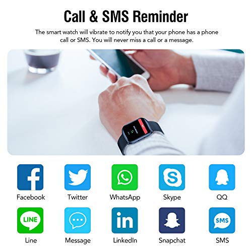 【Notifica intelligente e controllo della musica】Promemoria di chiamata e notifica di informazioni (SMS / Facebook / WhatsApp / Twitter / Line / QQ / WeChat / Skype / Telegram, ecc.). Basta collegare il telefono all’orologio e configurarlo con l’app. Quando è collegato a Bluetooth, l’orologio emetterà un avviso e visualizzerà il contenuto. Non perderai mai una chiamata o un messaggio e puoi controllare la tua musica preferita con l’orologio.