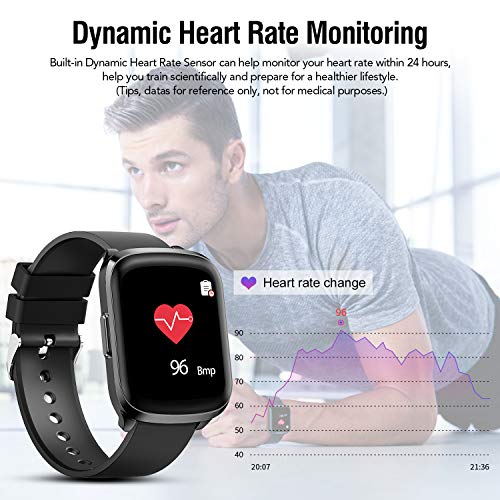 【Smartwatch multifunzione e sensore di movimento】Touchscreen Full HD, notifica del telefono, promemoria SMS, messaggio push, passi, chilometraggio, monitoraggio del sonno, promemoria sedentario, conteggio delle calorie, cronometro, frequenza cardiaca, modalità sport, telecomando fotografia, controllo della musica, sveglia, ecc. Gli smartwatch tengono traccia con precisione dei dati e delle attività sportive quotidiane. Offri 7 modalità sportive.