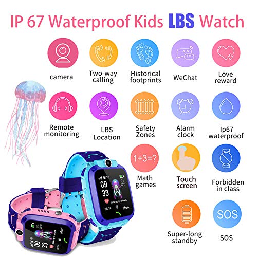 Smartwatch Impermeabile per Ragazzi Ragazze, Orologio Intelligente Telefono con LBS Locator Chat SOS Vocale Camera Math…