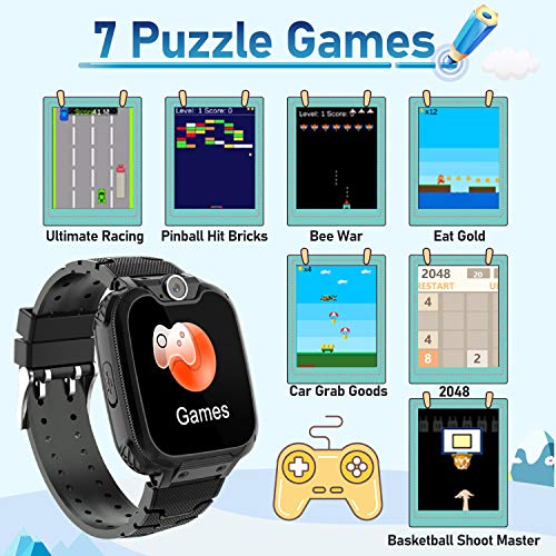 【7 puzzle game e cinque lingue smartwatch】: Questo orologio da gioco per bambini dotato di 7 giochi: Crawl 2048, Basketball Shoot Master, Bee War, Pinball Hit Bricks, Car Grab Goods, Eat Gold.Possono esercitare efficacemente il pensiero logico e la coordinazione occhio-mano!Nota: non supporta il download di altri giochi.Inoltre, puoi cambiare le lingue di cui hai bisogno,come inglese (impostazione predefinita), francese, spagnolo, tedesco, italiano.Questo sarà un grande regalo per tuo figlio.