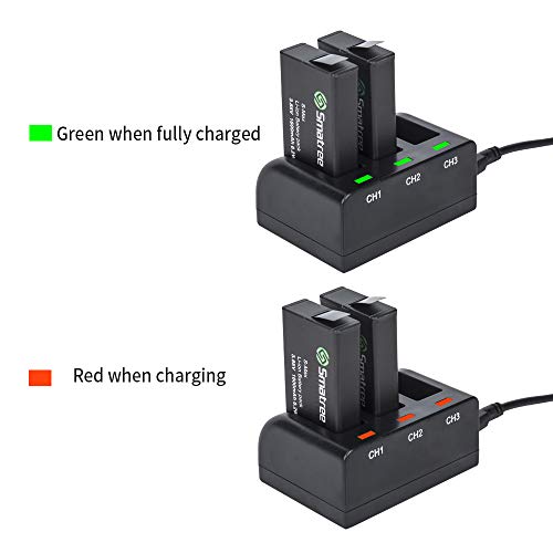Smatree Batteria (Pacco da 2) con Caricabatterie a 3 Canali Compatibile con GoPro Hero Max