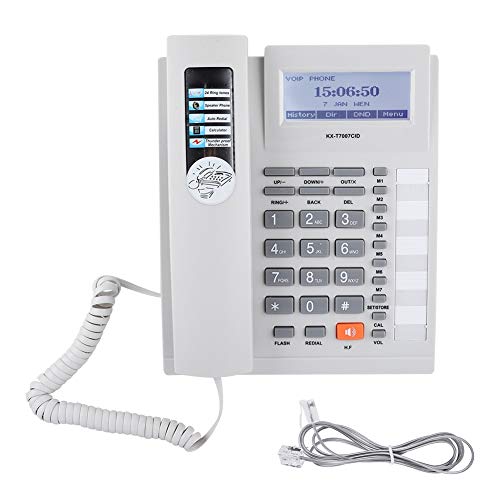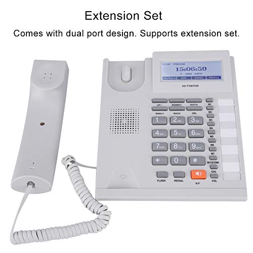 Questo telefono con filo con vivavoce consente di comunicare chiaramente con gli altri e visualizza il numero di chiamata in arrivo e così via tramite un display LCD. E supporta un set di estensioni. Inoltre, ci sono anelli di più stili per la tua scelta. Il telefono con filo ha il set di interni fornito con design a doppia porta. Telefono con filo che adotta pulsanti di grandi dimensioni per consentire di vedere chiaramente ogni numero e lettera. È molto pratico.