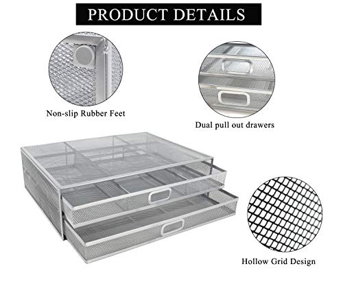 Supporto per Monitor Riser – Organizer da Scrivania in Rete Metallica con due Cassetti Estraibili per Desktop, Laptop…
