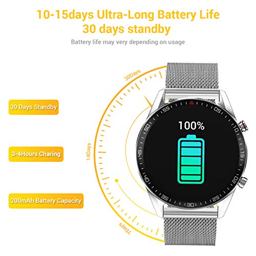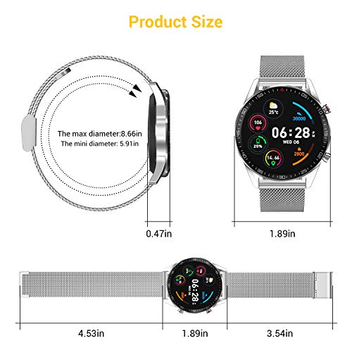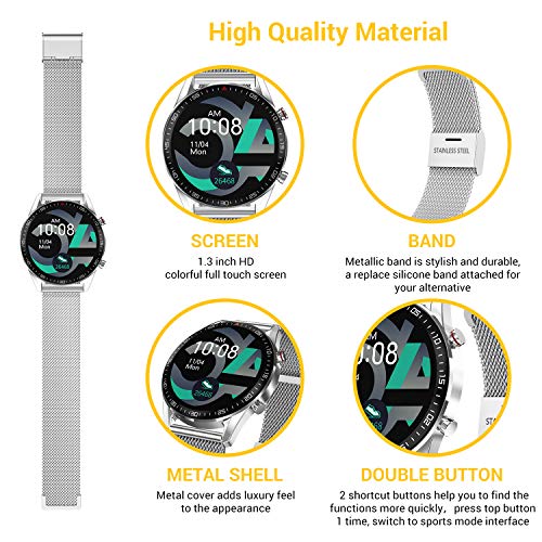 【Funzione di Notifiche & Supporto per Più Lingue】dopo aver collegato il telefono, lo bluetooth smartwatch può vibrare per ricordare informazioni sulla chiamata in arrivo, SMS e SNS (Facebook, WhatsApp, LinkedIn, Instagram e Twitter e così via).Non ti perderai nessuna notizia importante. Smartwatch acciaio supporta 14 lingue, inclusa l’Italia.Compatibile con la maggior parte degli smartphone iOS 8.0 e Android 4.4 sopra(Iphone,Samsung,Huawei,Xiaomi,Google,HTC,Sony, LG, ZTE ecc).