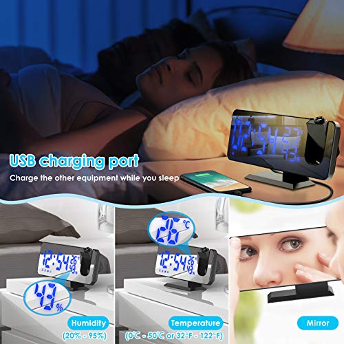 Display multifunzione e porta di ricarica USB – Su questo grande display a LED può mostrare l’ora (12H o 24H), la temperatura (0℃ – 50℃ o 32°F – 122°F), l’umidità (20% – 95%), l’icona della sveglia, allo stesso tempo può anche essere usato come uno specchio. Inoltre, è presente una porta di ricarica USB, che consente di ricaricare le altre apparecchiature mentre si dorme.