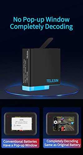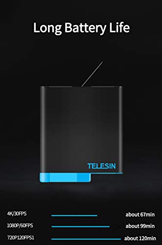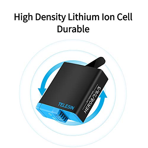 TELESIN Caricabatteria triplo per ricarica Caricabatteria + 2 batteria per GoPro 8/7/6/5, 2 custodia per batteria, mini…