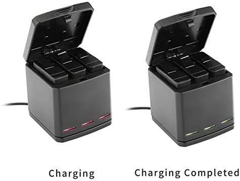 3 CARICATORE SLOT: Questo caricatore e scatola di ricarica possono caricare contemporaneamente fino a 3 batterie. 3 INDICATORI LED: corrispondenti a 3 slot singolarmente. INTERFACCIA TIPO-C: consente di alimentare il caricabatterie con il cavo GoPro / Tipo-C