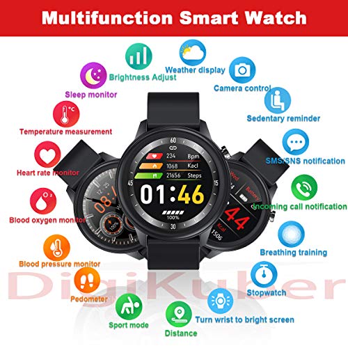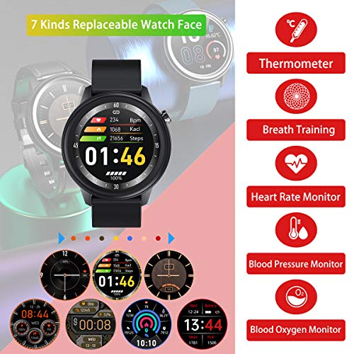 Temperatura Smartwatch Uomo Donna con Monitor della frequenza cardiaca Avviso di messaggio Monitoraggio meteo Pedometro…
