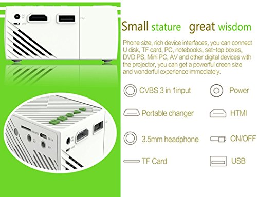 ♦♦ ♦ Versione aggiornata: batteria integrata da 1300 mAh, oltre 90 minuti con una sola carica. Supporto 5 V/2 A di ingresso per batteria portatile (una batteria da 5000 mAh può durare 3 ore). Vai in luoghi e portalo con te, oppure ti rimani in pausa e trasportato, un teatro mobile mobile. Con slot AV USB HDMI TF Card Slot, perfetto per l’intrattenimento notturno Holiday.