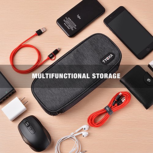 TYCKA Borsa da viaggio per accessori elettronici, custodia con due divisori regolabili in per cavi, chiavette USB…