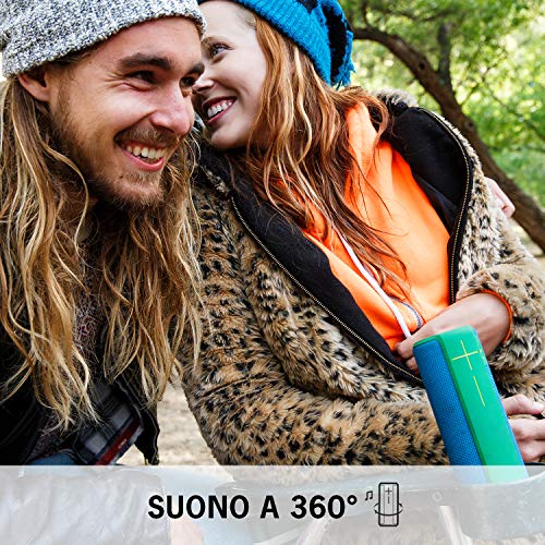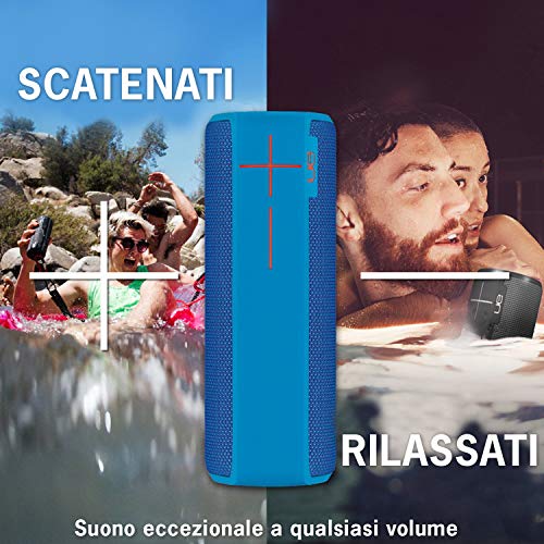 UE BOOM 2 è l’altoparlante wireless a 360 gradi che offrire un suono di alta qualità con bassi profondi e potenti in tutte le direzioni, ovunque tu vada. Resistente all’acqua, agli urti e realizzato con i materiali intriganti e sfrenati. Caricalo sulla bici, attaccalo alla borsa o semplicemente prendilo e vai – nell’acqua, nel fango, fai partire la festa. Basta solo toccare la parte superiore dell’altoparlante per riprodurre, mettere in pausa e saltare le tracce. Usa l’app UE BOOM per accedere a funzionalità, aggiornare l’altoparlante tramite wireless e renderlo ancora elevato. Resistenza all’acqua con classificazione IPX7 (fino a 30 minuti e a 1 metro di profondità)