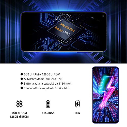 UMIDIGI F2, Smartphone 6.53” FHD+ Android 10 Telefono Cellulare, 6GB RAM 128GB ROM, Quad Camera AI da 48 MP, Batteria…