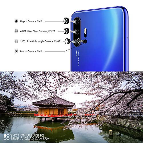 【Quad Camera AI da 48 MP】Con il sistema di telecamere quadrate AI AI di UMIDIGI F2 cellulare, puoi scegliere tra l’obiettivo ultra grandangolare per scatti epici di paesaggi, l’obiettivo macro per la bellezza dei primi piani, l’obiettivo di profondità per i grandi ritratti e la fotocamera principale per i momenti quotidiani.
