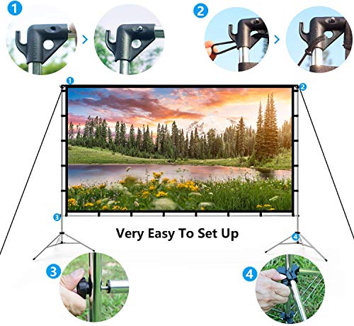 Stabilità: design esclusivo, struttura di doppio treppiede, con una maggiore stabilità; inoltre possiamo regalare 9 ganci e 4 corde per migliorare la stabilità e la capacità di resistenza al vento quando si usa all’aperto, in modo da migliorare la tua esperienza visiva all’esterno.