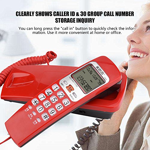 VBESTLIFE Telefono Fisso, FSK/DTMF ID Chiamante Telefono con Cavo Telefono Domestico Telefono Interno per Casa(Rosso)