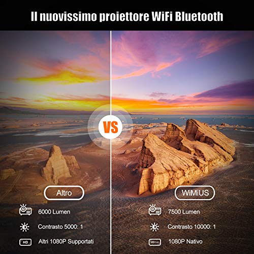 【La borsa per proiettore gratuita include e il videoproiettore Bluetooth 7500 Full HD 1080P WiFi supporta 4K】 Questo ultimo videoproiettore Full HD 1080P WiMiUS K1 viene consegnato con una borsa. Ha una risoluzione nativa 1920 * 1080p, 7500 alta luminosità e un rapporto di contrasto fino a 10000: 1, i chip di elaborazione digitale di fascia alta offrono una gamma di colori NTSC più elevata e, con il supporto della calibrazione hardware, presenta una qualità dell’immagine più vivida e nitida.